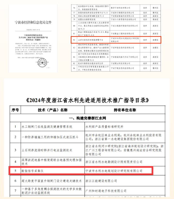 喜報 | 我院三項成果先后入選《2024年度寧波市優(yōu)質(zhì)產(chǎn)品推薦目錄》《2024年度浙江省水利先進(jìn)適用技術(shù)推廣指導(dǎo)目錄》