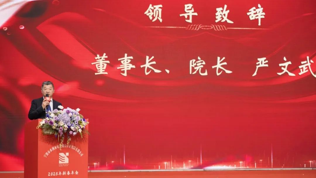我院董事長、院長嚴文武的致辭為晚會拉開序幕。嚴院長表示,2024年,全院團結一致,協(xié)同發(fā)力,攻堅克難,用一張優(yōu)秀的成績單為我院新征程吹響了號角;2025年,我院新大樓的落成,這是我院發(fā)展的新的里程碑,也是邁向新征程的起點,希望所有員工共享新家園,愛護新家園,繼續(xù)傳承和發(fā)揚寧波院人堅持不懈的優(yōu)良傳統(tǒng),再創(chuàng)佳績!最后,嚴院長對所有員工的辛勤付出表示感謝,致以祝福,祝愿寧波院在2025年乘風破浪,再創(chuàng)輝煌!