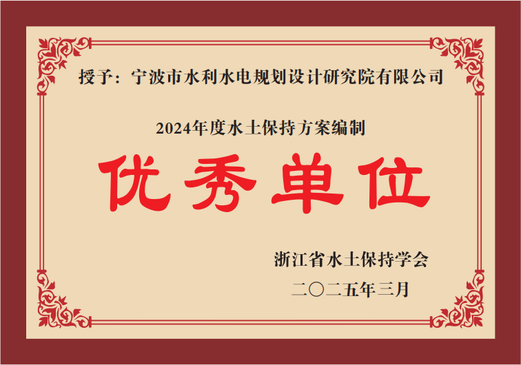 近日,浙江省水土保持學(xué)會(huì)第三屆理事會(huì)第三次理事會(huì)議召開,會(huì)議對(duì)2024年度生產(chǎn)建設(shè)項(xiàng)目水土保持優(yōu)秀單位等項(xiàng)目進(jìn)行現(xiàn)場通報(bào)并表彰。我院獲得“2024年度水土保持方案編制優(yōu)秀單位”榮譽(yù)稱號(hào)等3項(xiàng)榮譽(yù)。