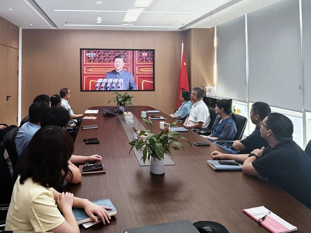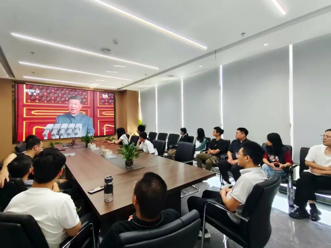 新大樓各層會議室現(xiàn)場氣氛莊重,全體黨員及職工認真聆聽習近平主席重要講話。當閱兵儀式開始時,大家不時為受閱部隊的雄壯陣容和先進裝備贊嘆鼓掌,由衷為祖國日益強大的綜合國力與國防力量感到自豪。觀看結束后,黨員們深受震撼、心潮澎湃,一致認為這場閱兵不僅展示了國威軍威,更彰顯了中華民族百折不撓、團結奮進的偉大精神。
