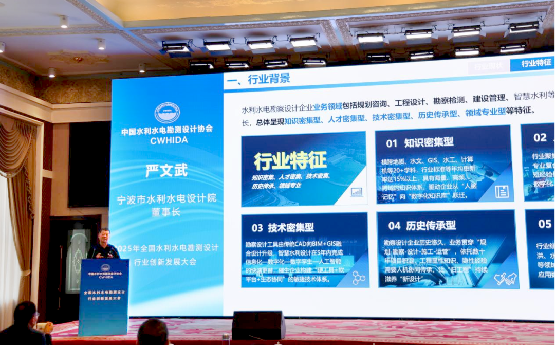 我院董事長、院長嚴文武在大會上作了《大模型賦能水利水電勘察設(shè)計企業(yè)數(shù)字化轉(zhuǎn)型》專題報告,系統(tǒng)分享了我院在人工智能大模型技術(shù)驅(qū)動下,推進企業(yè)數(shù)字化轉(zhuǎn)型的實踐路徑與成果經(jīng)驗。