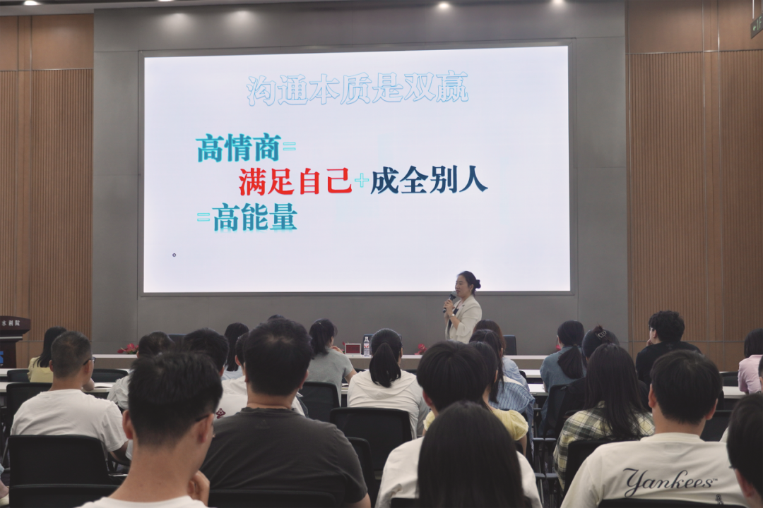 為提升員工的溝通能力與團隊協(xié)作效率,2025年9月18日下午,我院工會在院一樓報告廳舉辦了一場主題為“從自我激勵到高效協(xié)同的溝通法則”專題講座。本次講座聚焦職場溝通,特邀禮儀專家、教育學碩士陳瑛擔任主講。我院各部門近70名員工積極參與,現(xiàn)場氣氛熱烈。