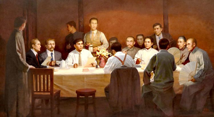 7月23日晚,中國(guó)共產(chǎn)黨第一次全國(guó)代表大會(huì)在上海法租界望志路106號(hào)(今興業(yè)路76號(hào))正式開幕。會(huì)址設(shè)在李書城、李漢俊兄弟住宅,大家圍坐在客廳長(zhǎng)餐桌四周,室內(nèi)沒有特別布置,陳設(shè)簡(jiǎn)單,氣氛莊重。出席者有上海的李漢俊、李達(dá);北京的張國(guó)燾、劉仁靜;長(zhǎng)沙的毛澤東、何叔衡;武漢的董必武、陳潭秋;濟(jì)南的王盡美、鄧恩銘;廣州的陳公博;留日學(xué)生周佛海以及陳獨(dú)秀委派的包惠僧。陳獨(dú)秀和李大釗因公務(wù)在身未出席會(huì)議,而在代表們心目中他們?nèi)允屈h的主要?jiǎng)?chuàng)始人和領(lǐng)袖。