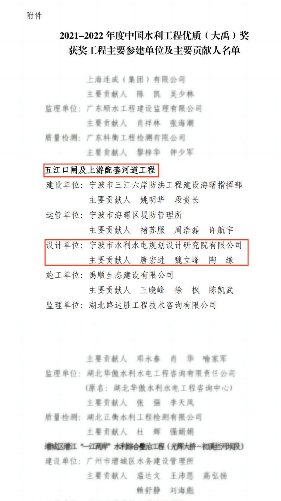近日,2021年~2022年度中國水利工程優(yōu)質(zhì)(大禹)獎獲獎名單出爐,36個獲獎工程中,我院成功鎖定一席!此次我院設計的五江口閘及上游配套河道工程,是我院第七個榮獲大禹獎的項目。