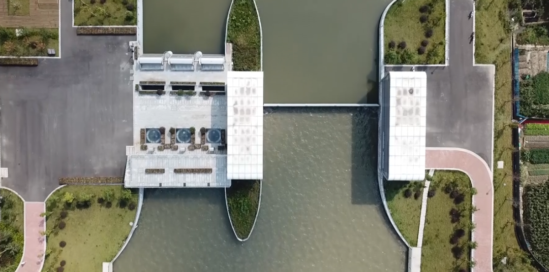 項目建筑設計與周邊環(huán)境完美結(jié)合。泵站及閘門上部采用無廠房設計,水泵機組采用立式潛水機組,閘門采用底軸驅(qū)動翻板門,泵站上下游視野通透,觀感效果佳。管理房屋頂設計為綠化屋頂,管理房隱藏于周邊綠化之中,滿足姚江岸高標準景觀要求。生態(tài)河道設計符合人文和諧之美。護岸采用干壘生態(tài)擋塊,中間預留魚槽設計,充分體現(xiàn)了生態(tài)環(huán)保設計理念。