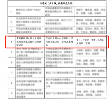 近日,浙江省水土保持學會第三屆優(yōu)秀設(shè)計評選獲獎名單出爐,15個獲獎工程中,我院成功鎖定一席!此次我院受寧??h水利局委托開展實施的寧??h飲用水源地上游香榧經(jīng)濟林水土流失防治措施研究榮獲三等獎。該獎項由浙江省水土保持學會設(shè)立,每兩年評審一次,通過對水土保持規(guī)劃設(shè)計領(lǐng)域中取得優(yōu)異成績的集體和個人進行表彰,從而推動全省水土保持行業(yè)的發(fā)展。