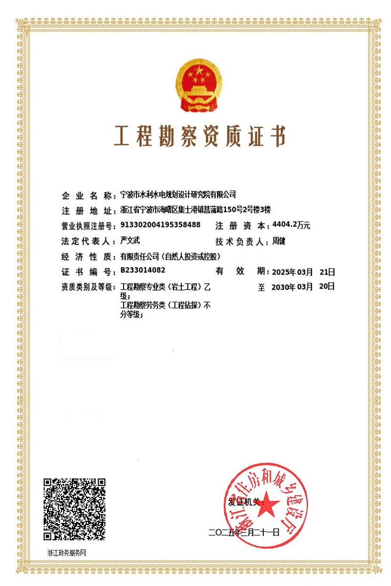 寧波院具有水利水電工程設(shè)計、工程勘察、工程咨詢、水土保持、水資源論證等多項資質(zhì)。承擔中小河流域規(guī)劃、水庫、河道整治、灘涂圍墾等工程的勘察、設(shè)計、咨詢、總承包業(yè)務(wù),以及各領(lǐng)域建設(shè)項目的防洪評價、水資源論證、水土保持方案編制、水土保持監(jiān)測、計算機行業(yè)CMMI 3級認證、知識產(chǎn)權(quán)管理體系認證等。